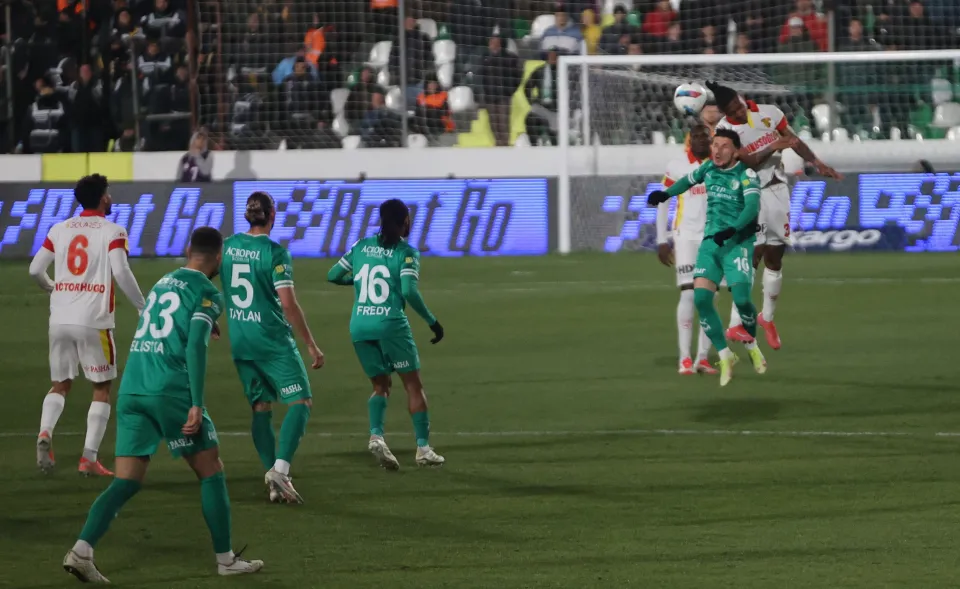 49. dakikada gelişen Göztepe atağında ceza sahasında topla buluşan Dennis'in vuruşunda meşin yuvarlak direğin yanından dışarıya çıktı.