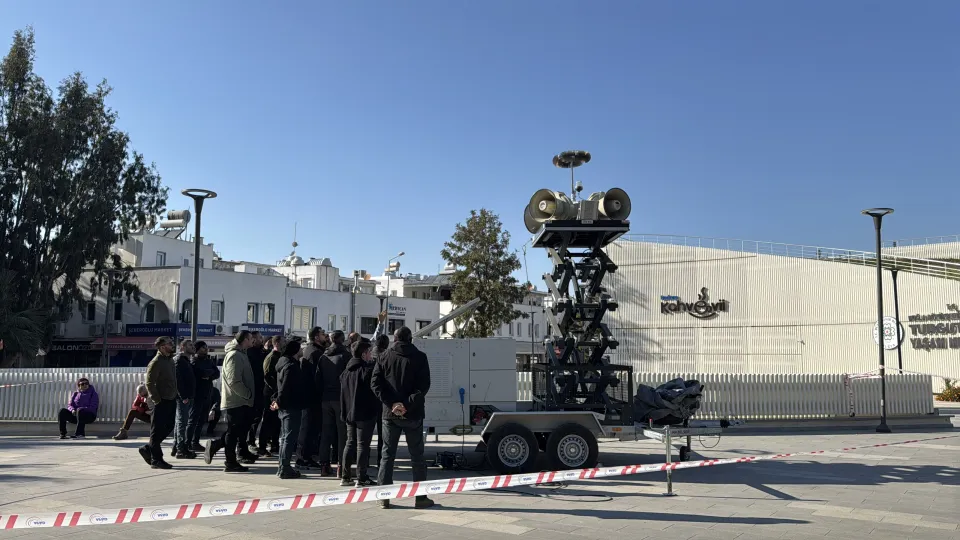 AFAD'da önceki gün gerçekleştirilen "Santorini Adası Sismik Aktivite ve Olası Risk Değerlendirme Toplantısı" kapsamında bölgeye sevk edilen mobil siren sistemi, Turgutreis Mahallesi'nde kıyıya yakın bir noktaya konuşlandırılarak faaliyete geçti.