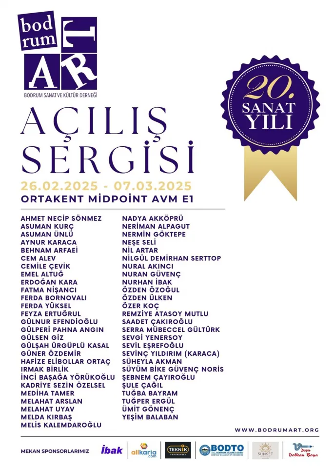 Bodrum'un sanat ve kültür hayatına 2005 yılından bu yana katkıda bulunan BodrumArt Sanat ve Kültür Derneği olarak, 20. Sanat yılı yeni mekanda yapılacak özel bir açılış sergisiyle kutlanacak.