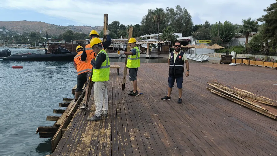 Bodrum Belediyesi Yapı Kontrol Müdürlüğü, 3194 sayılı İmar Kanunu hükümlerine göre ilgili mevzuata aykırı yapılaşmalarda, yıkım kararına ilişkin yasal süreci tamamlanan iskele ve eklentilerinin söküm işlemlerini ilçe genelinde sürdürüyor.