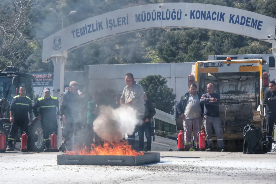 Bodrum Belediyesi Sivil Savunma Uzmanı Mukadder Yurtışığı tarafından verilen uygulamalı eğitim sırasında, personelin yangın tüplerini nasıl kullanacağı, ateşe ne yönde ve nasıl yaklaşacağı ve söndürme teknikleri gösterildi. Temizlik İşleri Müdürlüğü personelinin yangınlarla karşılaşma oranının çok yüksek olduğunu belirten Yurtışığı, ilk müdahalenin önemine dikkat çekti.
