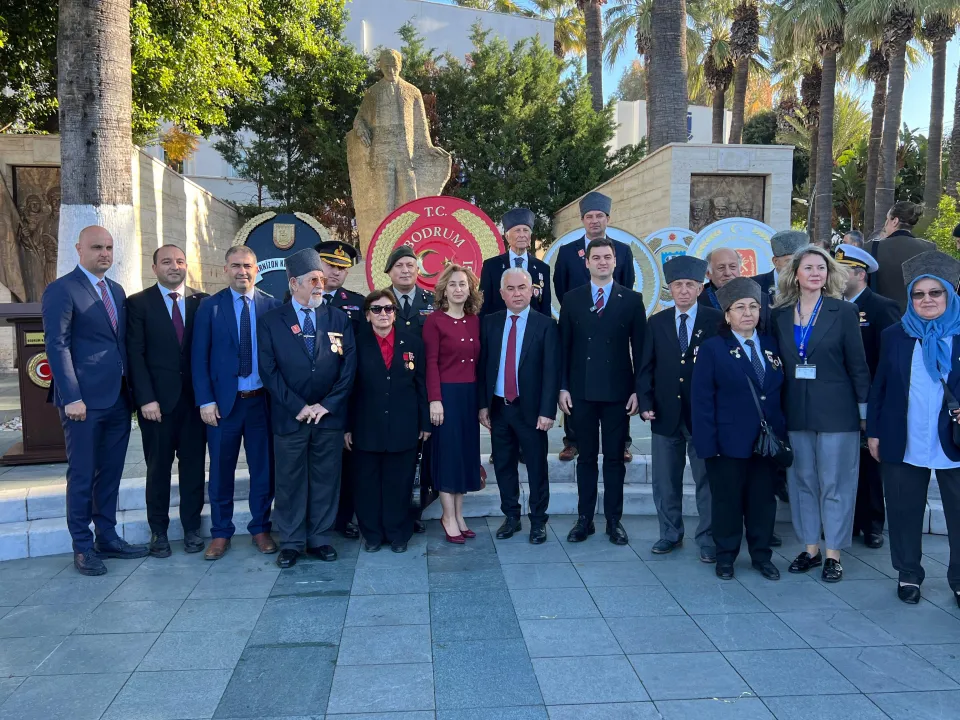 Belediye Meydanında yapılan törende Atatürk Anıtı’na çelenk sunumunun ardın saygı duruşu ve İstiklal Marşı okundu. Askeri personel tarafından da şehitler için saygı atışı yapıldı. Özel Bodrum Fen Bilimleri Anadolu Lisesi Okul Müdürü Sezai Coşkun’un günün anlam ve önemini belirten konuşmasının ardından tören sona erdi.
