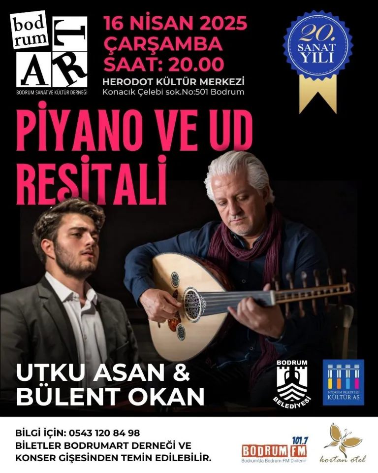 Müziğin birleştirici gücünü sahneye taşımaya hazırlanan genç piyanist Utku Asan ve ud virtüözü Bülent Okan, 16 Nisan’da Bodrum Belediyesi Herodot Kültür Merkezi’nde sanatseverlerle buluşuyor. Klasik batı müziği ve Doğu’nun zarif tınılarını bir araya getiren bu eşsiz konser, dinleyicilere unutulmaz bir müzik ziyafeti sunacak.
