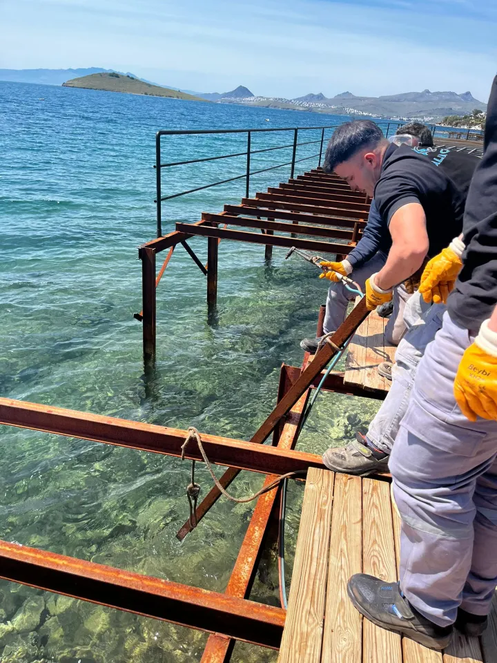 Bodrum Kaymakamlığı Milli Emlak Müdürlüğünden yapılan açıklamaya göre, Bitez Mahallesi'nde bir site tarafından deniz kenarına kaçak iskele yapıldığı ihbarı üzerine çalışma yürütüldü.