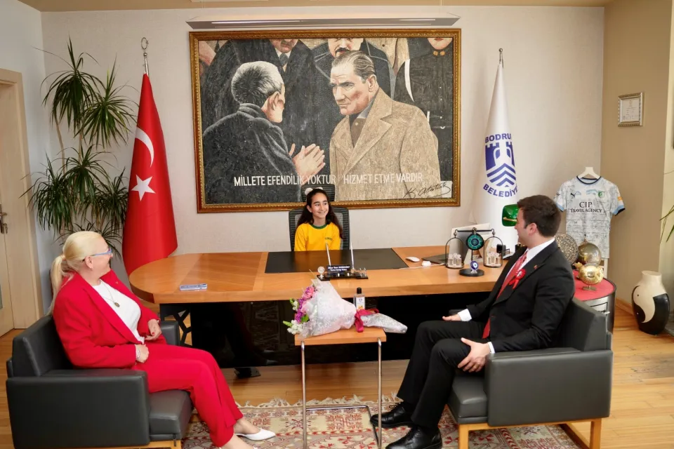 Belediye binasında düzenlenen temsili devir teslim törenine çevredeki okullardan gelen minik misafirler Ateş Can Meral, Neval Bal, Elif Su Ünler ve Ela Deniz katıldı. Başkanlık koltuğuna oturan çocuklar, Bodrum’un daha yaşanabilir ve çocuk dostu bir kent haline gelmesi için hazırladıkları talepleri sıraladılar. Talepler arasında; sokaklara sek sek çizilmesi, daha fazla çocuk festivali düzenlenmesi ve okullara halı saha yapılması gibi renkli ve anlamlı istekler yer aldı.