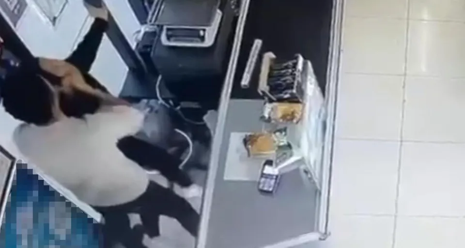 Olay anı iş yerinin güvenlik kamerasınca kaydedildi.