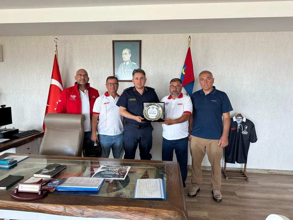 Bodrum Motosiklet Kulübü’nden Bodrum Sahil güvenlik karakol komutanı - BİNBAŞI Raşit gödelek, İlçe jan. komutanı - YARBAY gökhan kurgan Bodrum Liman Başkanı Tuncay Aydını ziyaret Ederek Teşekkür Plaketi Verdi.