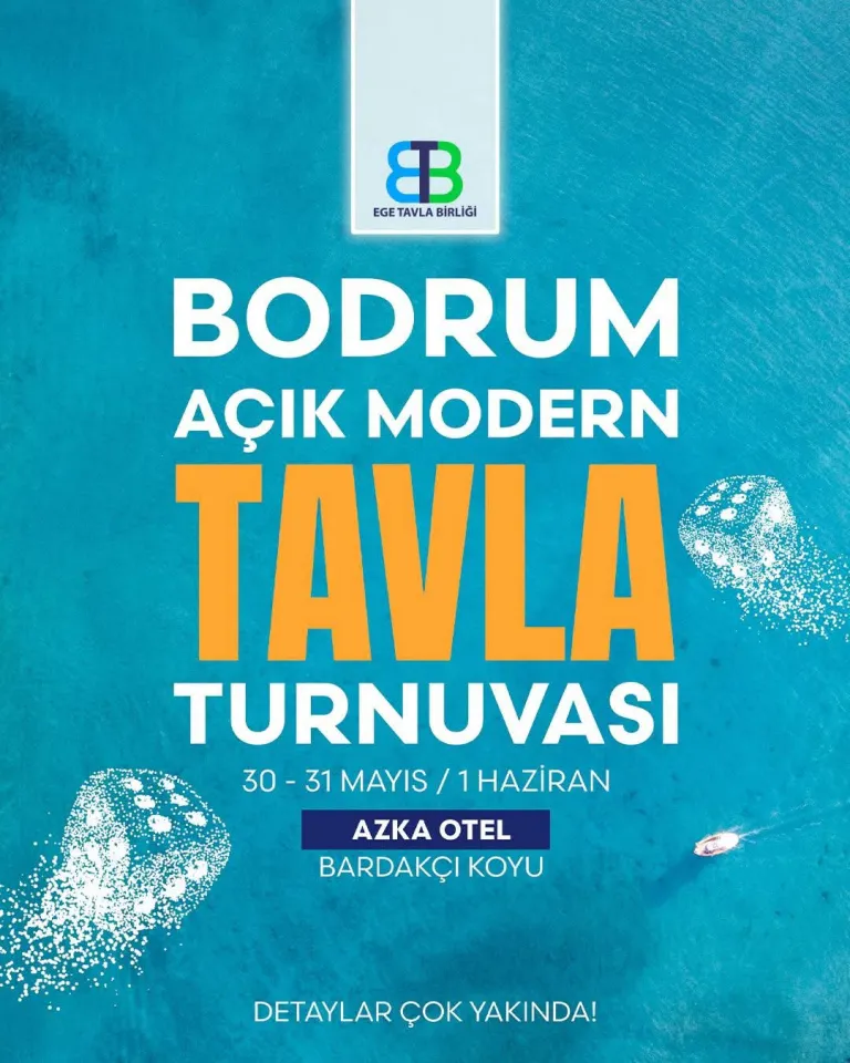 Bardakçı koyunda 3 gün boyunca rekabetin ve heyecanın dorukta olacağı BODRUM AÇIK MODERN TAVLA TURNUVASI Bodrum’un sosyal ve ekonomik yaşamına renk katacak.