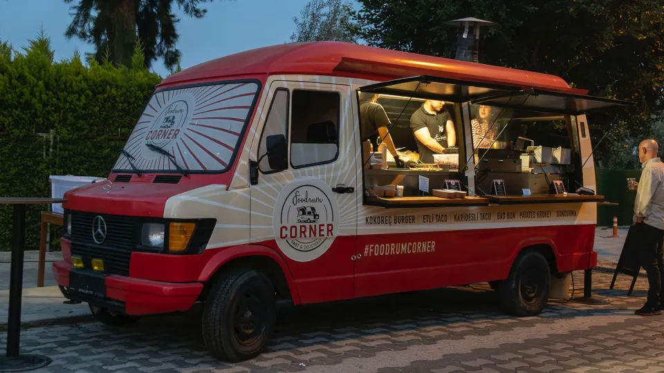 Foodrum Corner’ın karakteristik kırmızı aracı, tam donanımlı mobil mutfağıyla Bodrum’un dört bir yanında festivaller, etkinlikler ve özel günlere lezzet katmaya devam ediyor. Hem hızlı servis hem de samimi sunum anlayışıyla öne çıkan araç, bu hafta boyunca Cruise Port ziyaretçilerine eşsiz bir sokak lezzeti deneyimi yaşatacak.