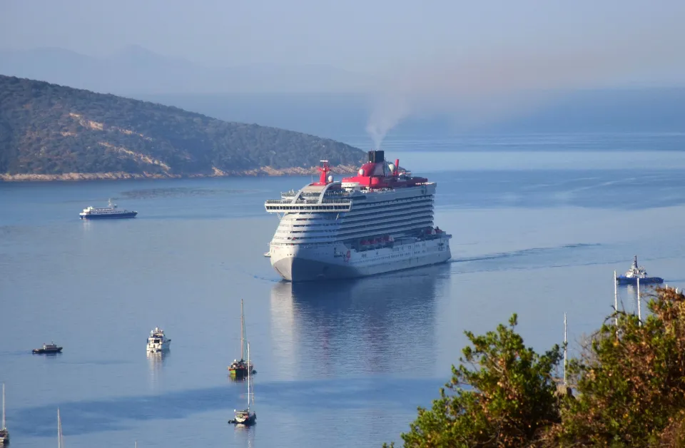 Bahamalar bayraklı "Resilient Lady" kruvaziyeri, 2 bin 556 yolcusuyla Muğla'nın Bodrum ilçesine demirledi.