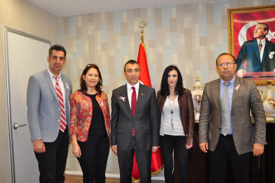 Her yıl 1-7 Nisan tarihleri arasında kutlanan Kanser Haftası’na dikkat çekmek için; 75. Yıl Milas Devlet Hastanesi Başhekimi Dr. Tarık Çubukcuoğlu, Milas Sağlık Müdürü Dr. Ergün Kırova, Milas Toplum Sağlığı Merkezi Başkanı Dr. Ebru Özuslu ve 75.Yıl Milas Devlet Hastanesi Başhemşiresi Şakire Demir, Milas Kaymakamı Eren Arslan’ı makamında ziyaret etti. Ziyarette, Kanser Haftası nedeniyle Kaymakam Eren Arslan’a günün anlamını ifade eden pembe kurdele takıldı.
