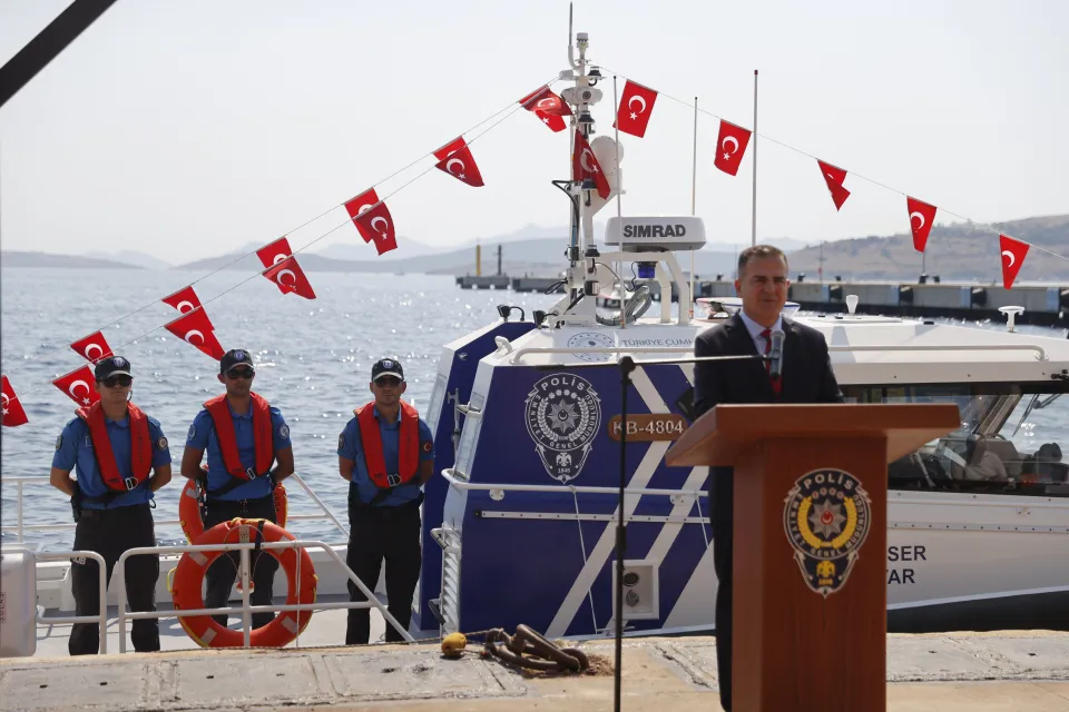 İl Emniyet Müdürlüğü bünyesinde hizmet veren kontrol botu için Bodrum Cruise Port Limanı'nda tören düzenlendi.