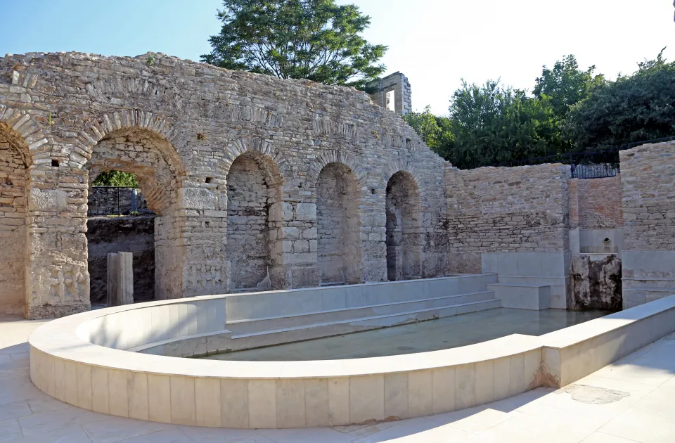 Yatağan ilçesindeki Stratonikeia Antik Kenti'nde bulunan Roma hamamında yürütülen kazı ve restorasyon çalışmalarının tamamlanmasının ardından 1900 yıl aradan sonra havuza su akıtıldı.