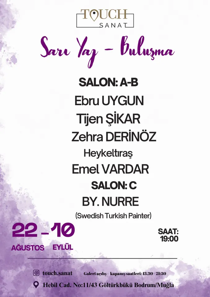 Yer: Touch Sanat Galeri – Hebil Cad. No: 11/43 Göltürkbükü Bodrum Muğla