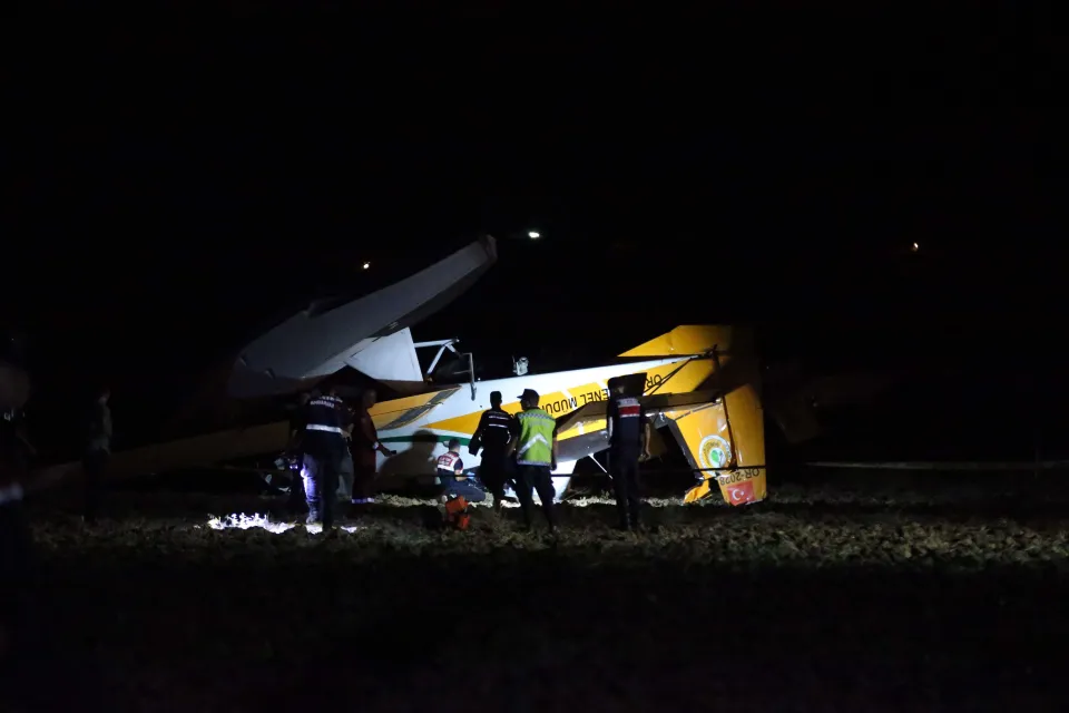 Hacıbayramlar Mahallesi'nde uçağın zorunluğu iniş yaptığı bölgede AFAD, itfaiye ve jandarma ekipleri tarafından çalışma yürütüldü.