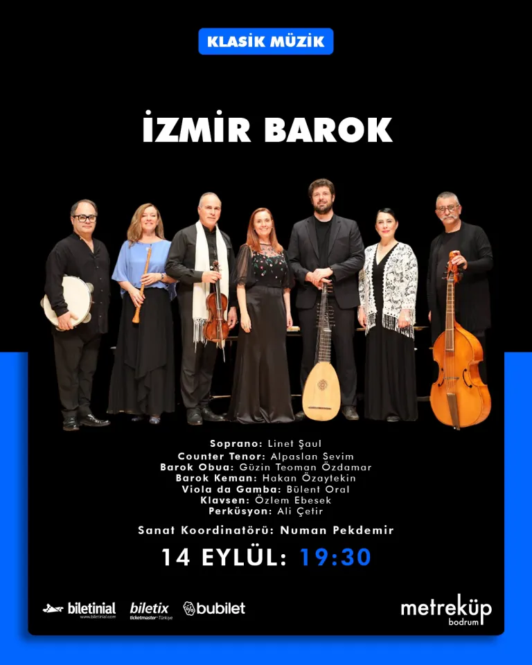 Yazın Klasikleri – Metreküp Bodrum Konserleri, zarafetiyle sanatseverleri büyülemeye devam ediyor. Türkiye’de ilk kez barok dönem çalgılarını kullanarak barok üslupla konser gerçekleştiren İzmir Barok, Metreküp Bodrum sahnesinde sanatseverlere unutulmaz bir akşam yaşatacak. Barok Müziğin büyüleyici dünyasına davetlisiniz!