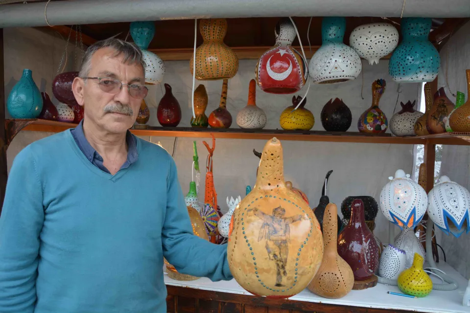 Köyceği’de yaşayan Mustafa Aykaç’ın emekli olduktan sonra hobi olarak başladığı su kabağı işlemeciliği gelir kapısı oldu.