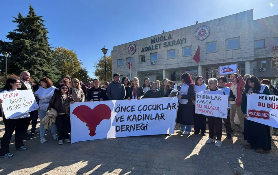 Öte yandan Muğla Kadın Dayanışma Komiteleri de adliye önünde pankart açarak kadın cinayetlerini protesto etti.