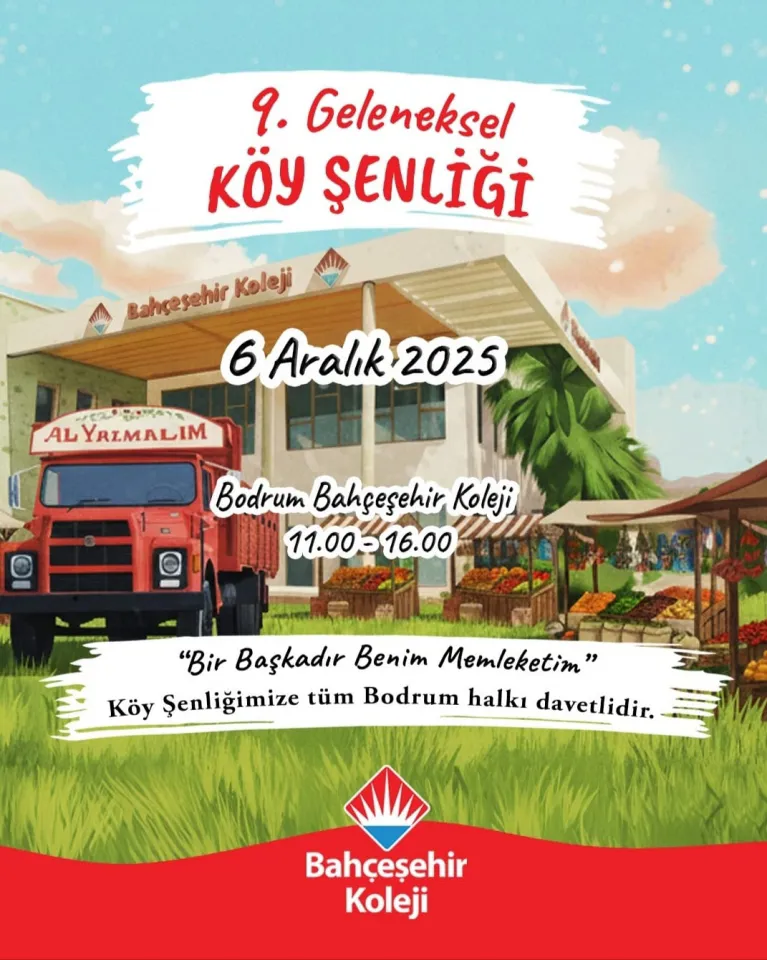 Bahçeşehir Koleji Bodrum Kampüsü, Tutum, Yatırım ve Türk Malları Haftası kapsamında düzenlediği 9. Geleneksel Köy Şenliği’ni 6 Aralık 2025 Cumartesi günü, 11.00–16.00 saatleri arasında okul bahçesinde gerçekleştirecek.