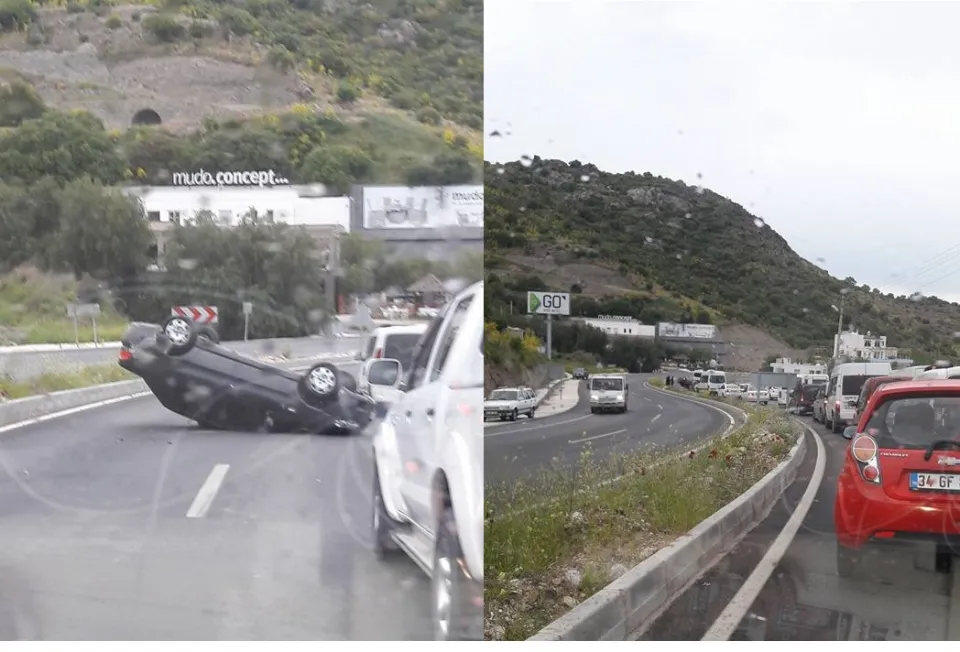 Sabah saatlerinde Bodrum’da Gürece mevkiinde bir trafik kazası meydana geldi. Yaralanan ya da ölenin olmadığı kazanın aşırı hızla seyreden sürücünün yağmur nedeniyle kayganlaşan yolda kontrolünü kaybetmesinden kaynaklandığı düşünülüyor. Sabah 08.00 civarında yaşanan kaza nedeniyle ters dönen araç yaklaşık bir saat boyunca bulunduğu yerden kaldırılamadı. Otomobiller, otobüsler ve servisler yaklaşık bir saat boyunca aracın bulunduğu yerden kaldırılarak yolun açılmasını bekledi.