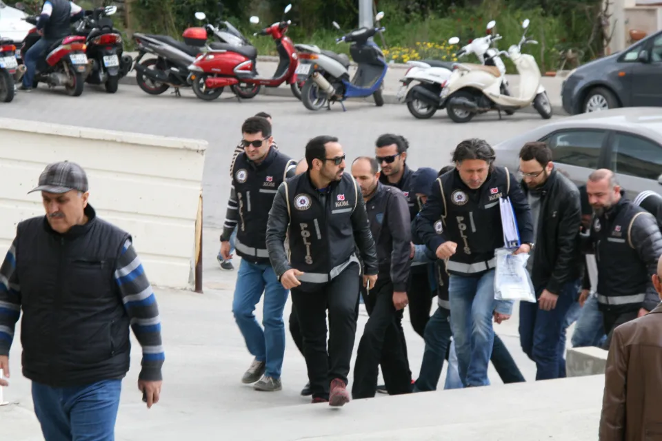 Marmaris ilçesinden yasa dışı yollarla Yunanistan'ın Rodos Adası'na gitmeye çalışırken yakalanan FETÖ/PDY şüphelileri, emniyetteki işlemlerinin ardından adliyeye sevk edildi.