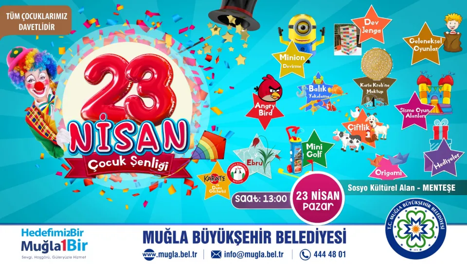 Muğla Büyükşehir Belediyesi, 23 Nisan Ulusal Egemenlik ve Çocuk Bayramı’nı Çocuk Şenliği etkinliği ile kutlayacak.