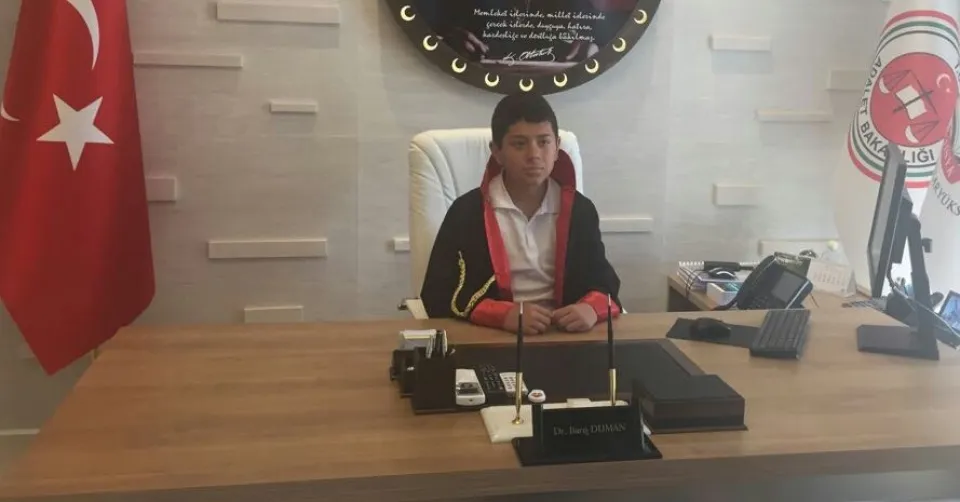 23 Nisan Ulusal Egemenlik ve Çocuk Bayramı nedeniyle Hüseyin Turgut Karabağlı Ortaokulu öğrencileri Bodrum Cumhuriyet Başsavcısı Barış Duman’ı makamında ziyaret etti. Başsavcı koltuğuna oturan öğrencinin ilk talimatı küçük yaşta çocukları çalıştıranlara ceza kestirilmesi oldu.
