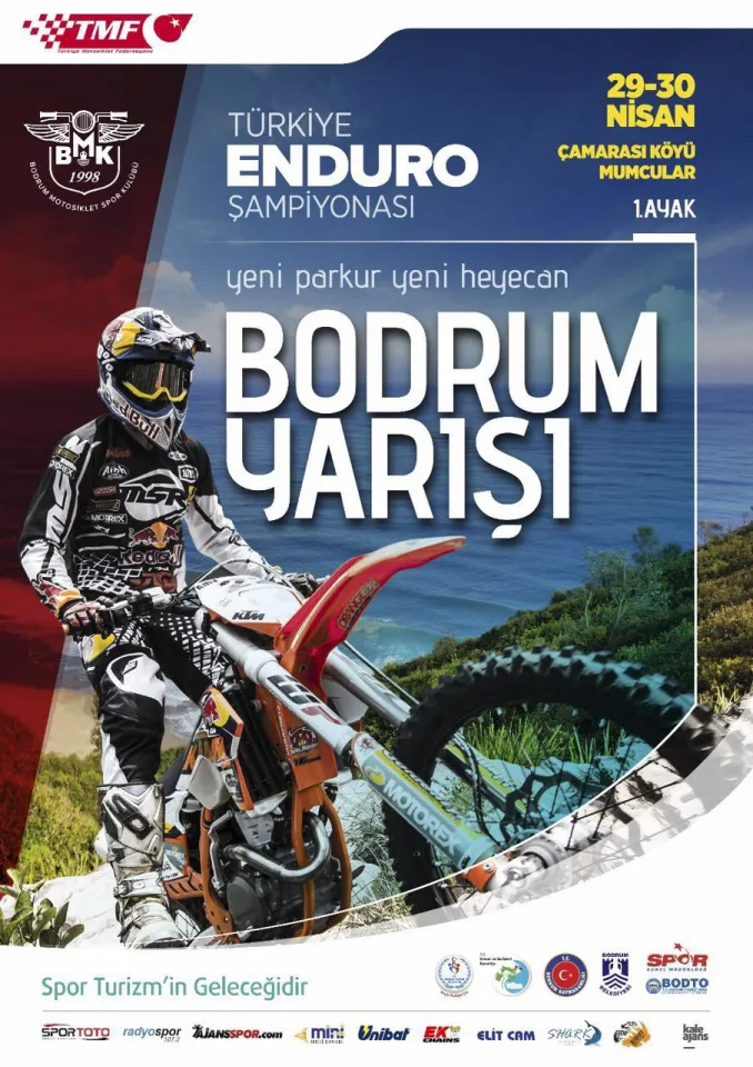 Türkiye Enduro Şampiyonası 1. Ayak Bodrum Yarışı’nda Türkiye’nin dört bir yanından yaklaşık 250 enduro sporcusunun Bodrum’da bir araya gelmesi bekleniyor. Bodrum Motosiklet Kulübü tarafından organize edilen ve Bodrum Belediyesi tarafından desteklenen yarışlar, “Yeni Parkur, Yeni Heyecan” sloganıyla Mumcular’da Çamarası köyünde düzenlenecek. Şampiyonanın ilk ayağında Türkiye'nin en yetenekli enduro sporcuları yarışacak. Yarışçılar arasında kadın sporcular da yer alıyor. Türkiye Enduro Şampiyonası’nın açılış yarışı niteliğindeki yarışlar, 29 Nisan Cumartesi günü Bodrum Belediye Meydanı’ndan magazin startı verilerek başlayacak. Bodrum Enduro motosiklet yarış parkurundaki yarış ise 30 Nisan Pazar günü Çamarası Mevkii’nde şampiyona için özel olarak hazırlanan parkurda gerçekleştirilecek.