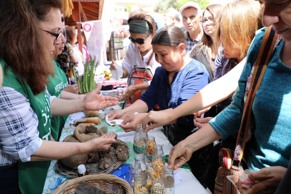 5. Tohum ve Fide Şenliği Atilla Totoş, Seyma Gümüş Işık, Nihal Bayraktar, Feyyaz Keskin, Taner Mercan, Zerrin Çelik, Füsun Tezcan, Sema Köseoğlu ve Nuran İşler’in zeytinyağ, yerel tohum, doğal ilaç yapımı ve yenilebilir otlar konularındaki bilgilendirici söyleşileri ile başladı.