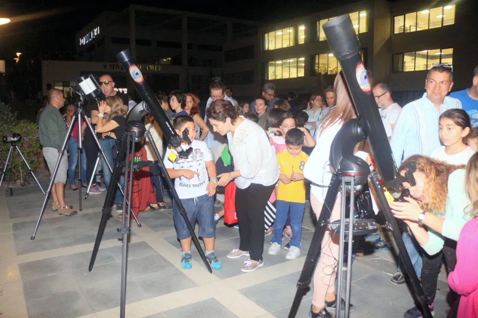 Teleskoplarla Ay ve Jüpiter gözlemi yapan çocuklar, çıplak gözle takımyıldızlarını bulmayı öğrenirken, çeşitli uygulamalar kullanarak tabletlerle çeşitli yıldız ve gök cisimleri hakkında da bilgi edindi.