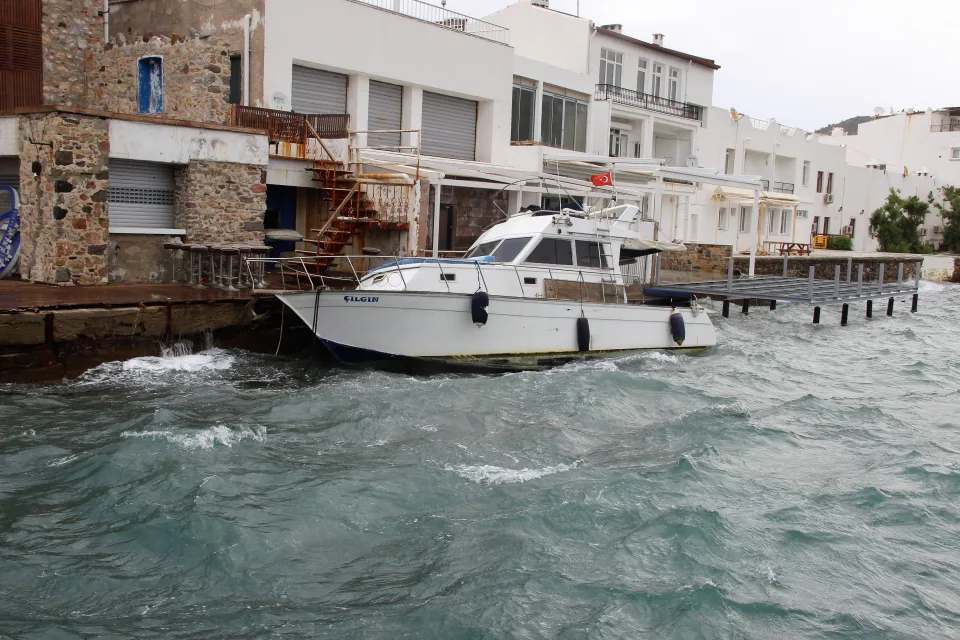 Saatteki hızı 70 kilometreye kadar ulaşan şiddetli rüzgar nedeniyle vatandaşlar ve esnaf zor anlar yaşadı. Fırtınanın etkisiyle halatı kopan bir tekne Kumbahçe sahilinde bir iş yerinin iskelesini parçalayarak karaya oturdu. Birçok sahil malzemesi ise denize sürüklendi. Bodrum Belediyesi ilçede anonslar yaparak, vatandaşların dikkatli olması için uyarıda bulundu. Kumbahçe sahilinde ise dalgaların boyu 1 metreye kadar yükseldi. Uluslararası suda giden birçok kuru yük gemisi, Bodrum koylarına sığındı.