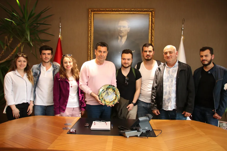 Kütahya Dumlupınar Üniversitesi Güzel Sanatlar Fakültesi Öğretim Görevlisi Mehmet Pehlivan ile Görsel İletişim Tasarımı son sınıf öğrencileri Bodrum Belediye Başkanı Mehmet Kocadon’u ziyaret etti.