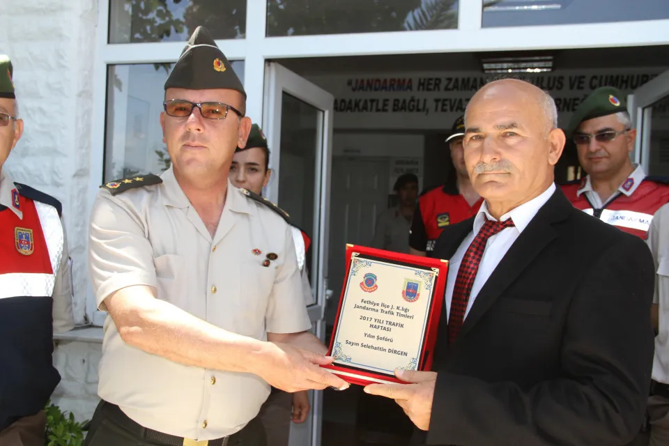 Trafik Haftası nedeniyle Fethiye İlçe Jandarma Komutanlığına bağlı Trafik Timi ekipleri trafikte farkındalık oluşturabilmek amacıyla yılın şoförünü belirledi. Son beş yıldır hiç kazaya karışmamış ve trafik kurallarına azami uyum sağlayan taksi şoförü Selahaddin Dirgen, yılın şoförü seçildi.