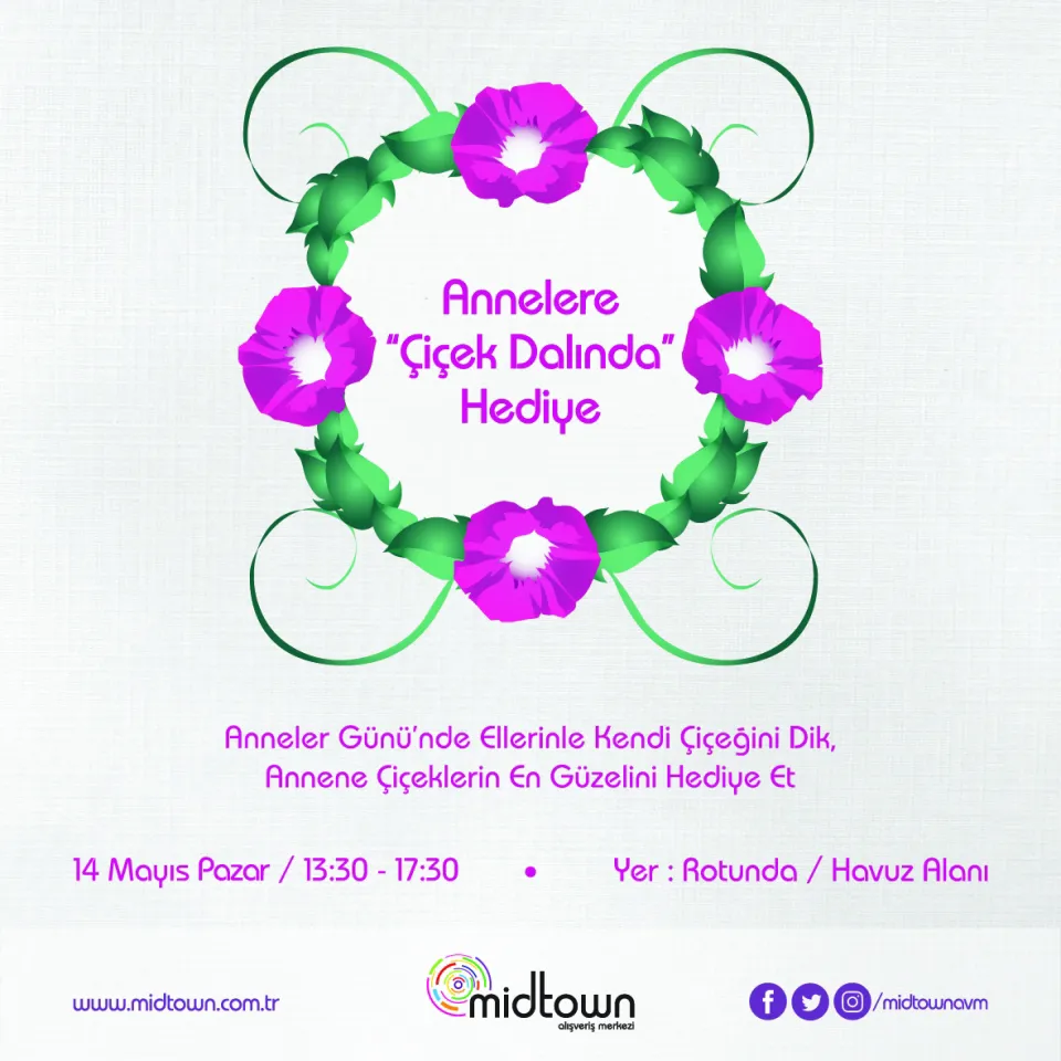 Midtown Alışveriş Merkezi’nde Anneler Günü’nde düzenlenecek olan etkinlikte çocuklar elleriyle çiçek dikip annelerine armağan edecek.