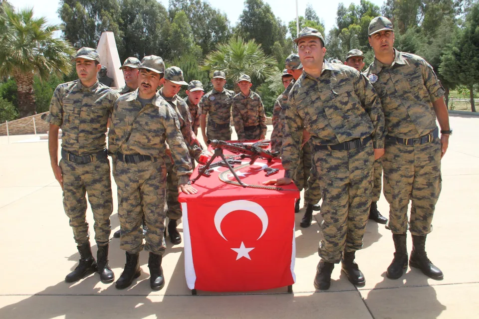 Konuşmaların ardından askerler, silah ve bayrağa el basarak yemin etti.