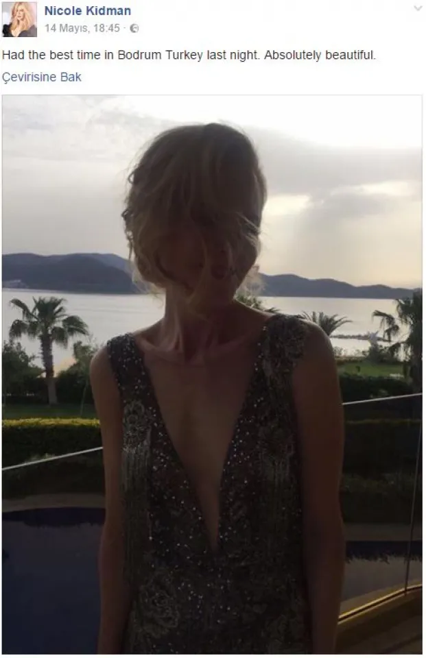 Dünyaca ünlü Hollywood yıldızı Nicole Kidman Bodrum’da geçirdiği akşamdan bir fotoğrafı sosyal medya hesabından paylaştı. Kidman’ın 14 Mayıs’ta, “Had the best time in Bodrum Turkey last night. Absolutely beautiful.” (Bodrum’da dün gece en iyi zamanı geçirdim. Kesinlikle çok güzel” notuyla paylaştığı fotoğrafa beğeni ve yorum yağdı. Fotoğraf, 30 bin kişi tarafından beğenildi.