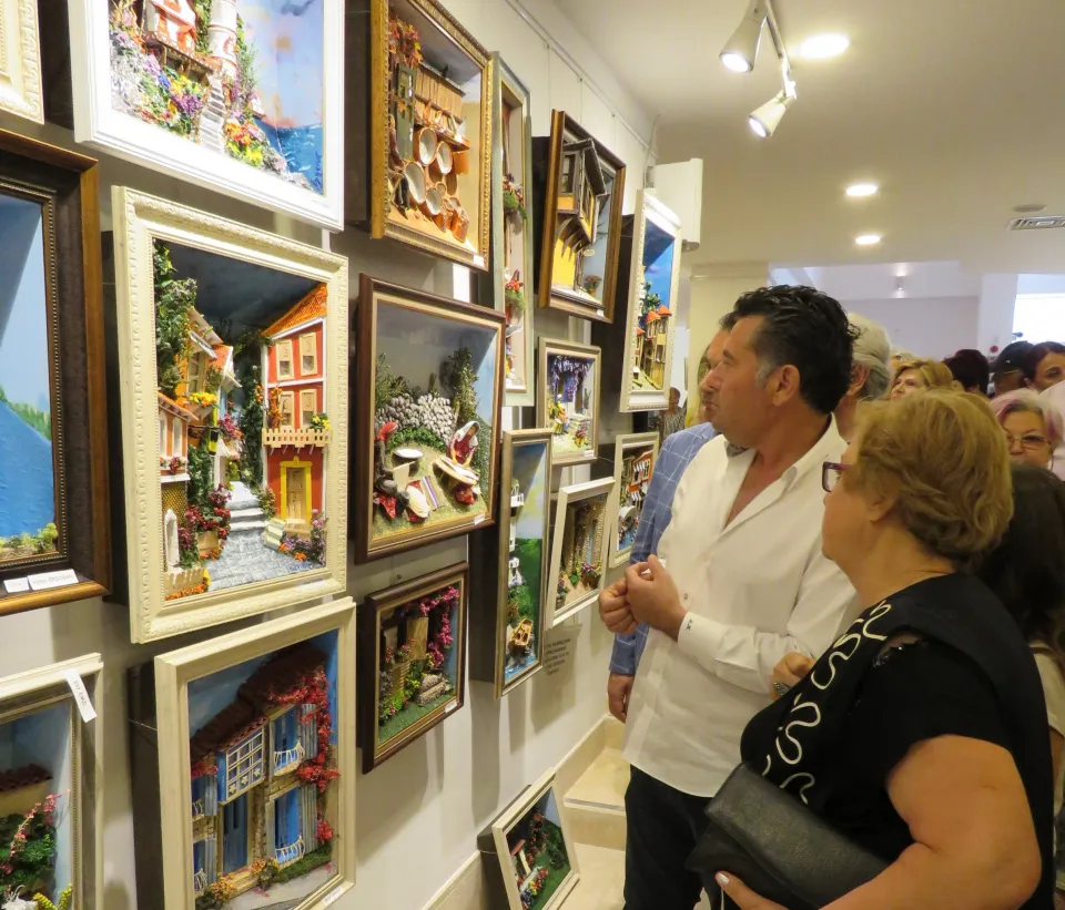 Bodrum Belediyesi Şevket Sabancı Kültür ve Sanat Merkezi, Bodrum Halk Eğitim Merkezi ve ASO Müdürlüğü iş birliğinde düzenlenen sanat kurslarının “Yıl Sonu Sergisi”ne ev sahipliği yapıyor. Yaklaşık 8 ay süren sanat kurslarında eğitmenler Ayhan Uncuoğlu, Berrin Akdere, Ayşe Hıdıroğlu, İlknur Atagür, Ümit Tonkuş, Ayten Yücel, Selma Saraç, Emine Demir, Yeşim Orhan, Müzeyda Tokmak Buluz öncülüğünde kursiyerlerin hazırladıkları eserler düzenlenen açılışın ardından sergilenmeye başladı. Sergide; çini, minyatür, ebru, seramik, grafik desen, sulu boya resim, yağlı boya resim, üç boyutlu şekillendirme, ahşap boyama, el nakışları, tel kırma, tel sarma, kırk yama sanat dallarında olmak üzere bin beş yüzün üzerinde eser yer alıyor.