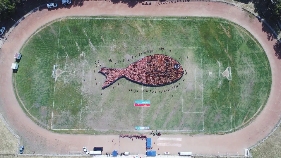 Yapılan konuşmayla öğrenciler tarafından rekor denemesi başladı. Sahada bulunan 2791 öğrenciden oluşan balık figürü için rekorun kırılabilmesi için öğrenciler 5 dakika boyunca hareketsiz bekledi. Sürenin bittiğinin ilan edilmesinin ardından sahada bulunan öğrenci ve öğretmenler rekor denemelerini kutladı.