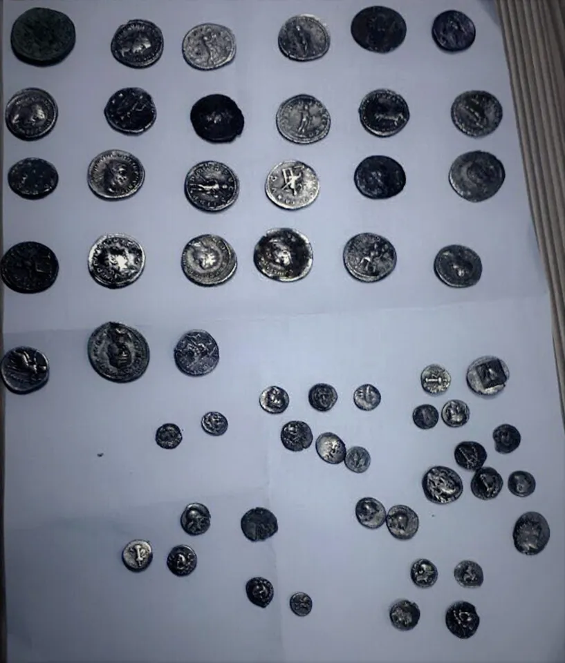 Muğla Emniyet Müdürlüğü Kaçakçılık ve Organize Suçlar Şube Müdürlüğü ekiplerinin Dalaman ilçesinde düzenlediği operasyonda Roma dönemine ait sikke ele geçirildi.