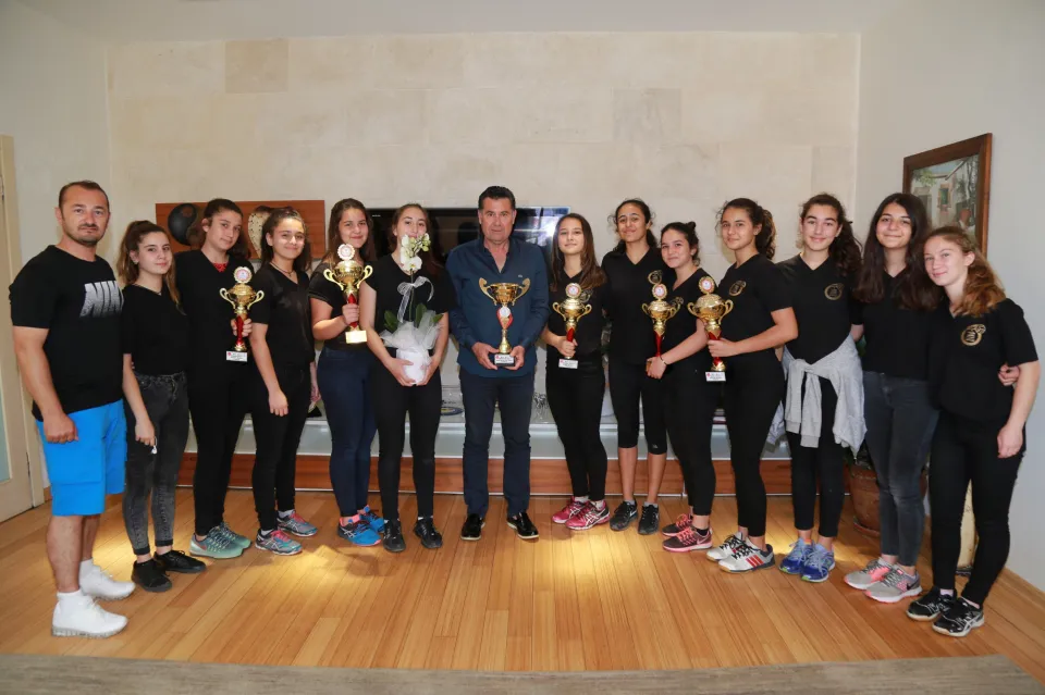 Bodrum Voleybol Spor Kulübü Başkanı ile genç sporcular, Bodrum Belediye Başkanı Mehmet Kocadon’u makamında ziyaret etti.