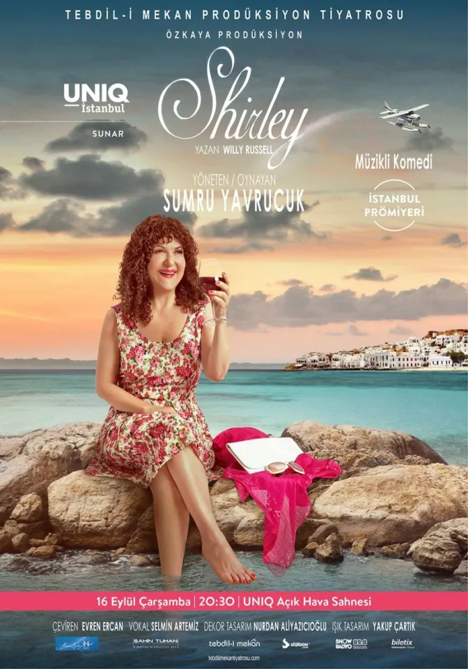 Tek kişilik müzikli bir komedi oyunu olan Shirley, Türkiye’de başarılı oyuncu Sumru Yavrucuk’un yorumuyla sahneleniyor. Sayısız tiyatro ödülünün sahibi Yavrucuk, Shirley’nin yönetmenliğini de üstlenirken, aynı zamanda oyundaki tüm karakterleri sahnede tek başına canlandırıyor. Tebdil-i Mekân Prodüksiyon Tiyatrosu tarafından sahneye taşınan oyunun çevirisi Evren Ercan, dekor tasarımı Nurdan Aliyazıcıoğlu, ışık tasarımı ise Yakup Çartık tarafından gerçekleştirildi.