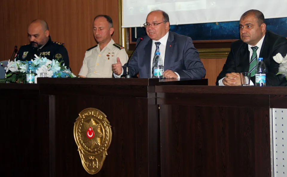 Turizmin küresel ekonomi yaratan çok önemli bir aktivite olduğunu belirten Muğla Emniyet Müdürü Hakan Çetinkaya, “Ülkemiz ekonomisi açısından da turizmin çok önemli bir yer tuttuğunu ve ilimiz Muğla açısından da turizmini en önemli gelir kaynaklarından birisi olduğunu hepimiz biliyoruz. Yaklaşık 3 milyon civarında yabancı turistin, bir o kadar da yerli turistin sirküle olduğu, dünya açısından da çok önemli bir destinasyona sahip bir il Muğla. Terörizm en basit anlamıyla siyasal şiddet demektir. Politik bir amacı olan, bir organizasyonu olan, emir komuta içerisinde faaliyet gösteren, diğer çıkar amaçlı suç örgütlerinden farklılık gösteren, temel hedefinin siyasal hedefler olduğu bir yapıdır. Terörizm, aslında ırk, din, dil, coğrafya farkı gözetmez. Bir turist, bir yerli fark etmez, her an terörizmin hedefi olabilir. Terörizm kesinlikle ve kesinlikle sınır aşan küresel nitelikli bir olgudur” dedi.