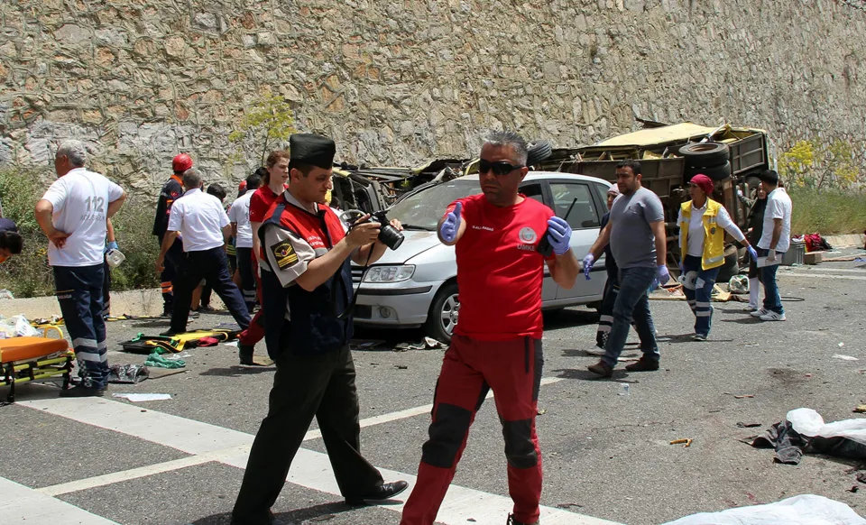 Anneler Günü etkinliği için İzmir Buca’dan Muğla’nın Marmaris ilçesine giderken Muğla-Antalya Karayolu Sakartepe mevkiinde kaza yapan ve 24 kişinin ölümüne, 10 kişinin yaralanmasına neden olan araçta, bilirkişi heyetince teknik inceleme yapılıyor.