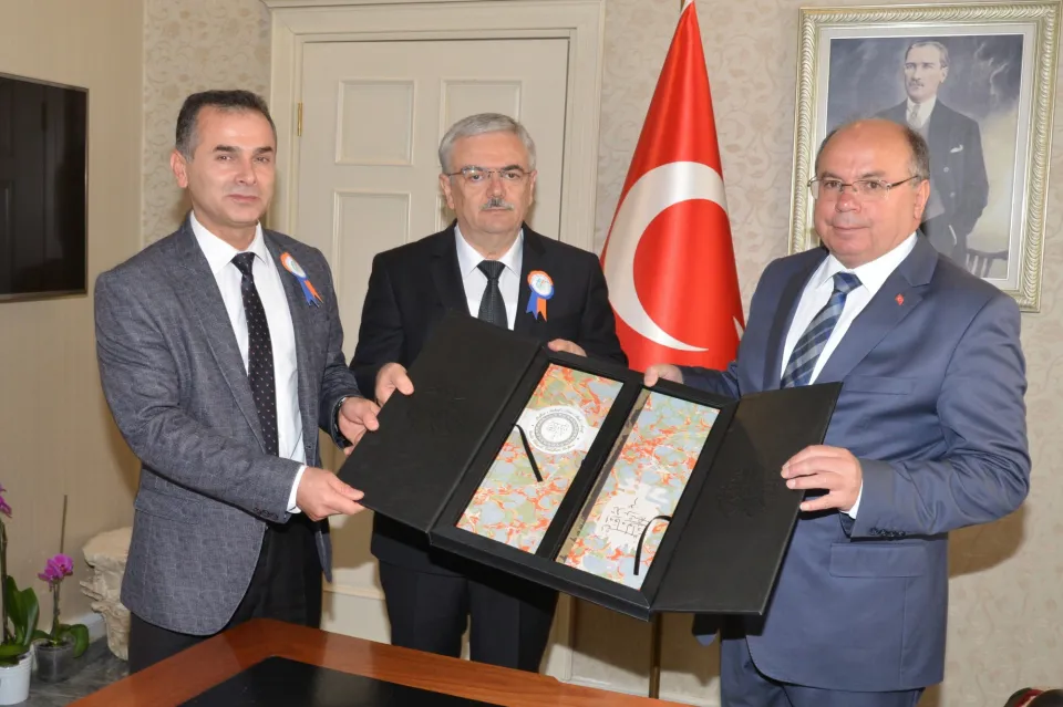Konuşmaların ardından Muğla Kadastro Müdürü Ali Çelik ve Menteşe Tapu Müdürü Mehmet Satır, Tapu ve Kadastro Genel Müdürlüğü Arşiv Dairesi Başkanlığı’nda bulunan eserlerin arasında yer alan ve geçtiğimiz yıllarda çevirisi yapılarak basılan “Defter-i Evkâf-ı Livâ-i Kuds-i Şerîf” isimli Kudüs Vilayeti Vakıfları Defteri’ni Vali Çiçek’e takdim etti.