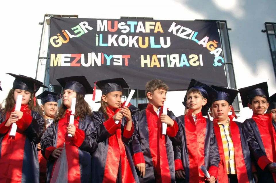 Güler Mustafa Kızılağaç İlkokulu'nda düzenlenen mezuniyet töreninde 119 öğrenci kep fırlattı.