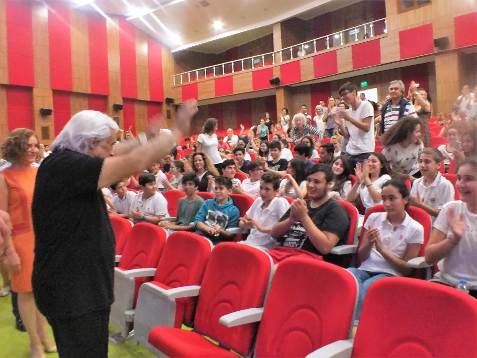 Müjdat Gezen’i dinlemeye gelen diğer sanatçılarla özlem gideren sanatçı, öğrencilere korkmamalarını, korkuyla ancak okuyarak zenginleştirdikleri düşüncelerinden aldıkları cesaretle baş edebileceklerini söyledi. Bol bol okumalarını, bilgisayardan biraz daha uzak kalmalarını tavsiye etti.