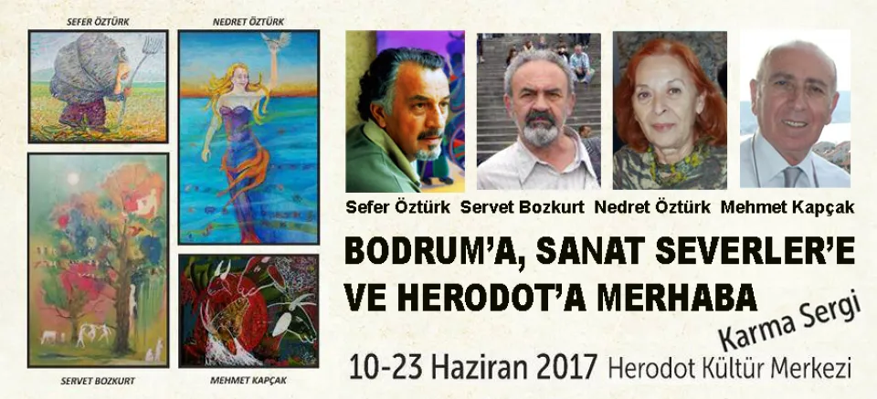 Önce İstanbul Öğretmen Okulu, ardından da Devlet Tatbiki Güzel Sanat Yüksek Okulu’ndan (Marmara Üniversitesi Güzel Sanatlar Fakültesi) birlikte mezun olan dört arkadaş ortak sergide bir araya geldi. "Bodrum’a, Sanatseverler'e ve Herodot'a Merhaba" başlıklı resim sergisinde 25 yılın ardından yeniden buluşan sanatçılar Sefer Öztürk, Servet Bozkurt, Nedret Öztürk ile Mehmet Kapçak’ın resimleri sergileniyor. 10 Haziran Cumartesi günü Herodot Kültür Merkezi Sergi Salonu’nda açılan sergide dört arkadaşın değişik tekniklerde ürettiği yaklaşık 100 çalışma yer alıyor. Sergi, 23 Haziran'a dek görülebilecek.