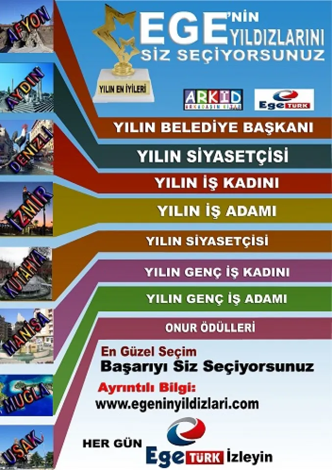 Arkadaşım Kitap Derneği (ARKİD) Başkanı Sıddık Sönmez’in yürüttüğü çalışma, Ege Türk TV ile birlikte gerçekleştirilecek. Sönmez; “Arkadaşım Kitap Derneği olarak Türkiye’de ilkleri gerçekleştirdik. 7 yıldır Fethiye’de başarıyla ve en küçük olumsuzluğun bile yaşanmadığı çalışmalarımızı, artık Ege Bölgesi’nde gerçekleştireceğiz. Ege Türk Tv ile yapacağımız çalışmada amacımız, derneğimizi tanıtmak ve dağıtacağımız kitaplar için kaynak yaratmak. Türkiye’nin bu alanda yapılmış olan büyük katılımlı anket çalışması olacak. SMS ve web sitesinden adaylara oy verilecek. Her iki alandan verilen oyların toplamı ile sıralama belirlenecek. Anket, Ege Bölgesi’ndeki illerde yapılacak. ‘Yılın Belediye Başkanı, Yılın İş Kadını, Yılın İş Adamı, Yılın Siyasetçisi, Yılın Genç İş Adamı, Yılın Genç İş Kadını’ dallarında anket yapılacak ve halkın oylarıyla seçilecek. Bölge dışından aday gösterilemiyor. Tüm adayların Ege Bölgesi’nden olması gerekiyor. Örneğin ‘Yılın Siyasetçisi’ dalında, Ege Bölgesi dışından adaylar olamıyor. Sadece Ege Bölgesi’ni kapsıyor. 8 ilin belediye başkanları zaten belli. Yılın Siyasetçisi dalında partilerin il başkanlıkları ile görüşerek belirleyeceğiz. Yılın iş adamı, iş kadını, genç iş adamı, genç iş kadını dalında adayları ise ticaret odalarından isimleri alıyoruz. Biz Ticaret Odaları’ndan her dalda iki aday ismi vermelerini istiyoruz. Ayrıca adaylar bireysel olarak da başvurabilirler.” dedi.