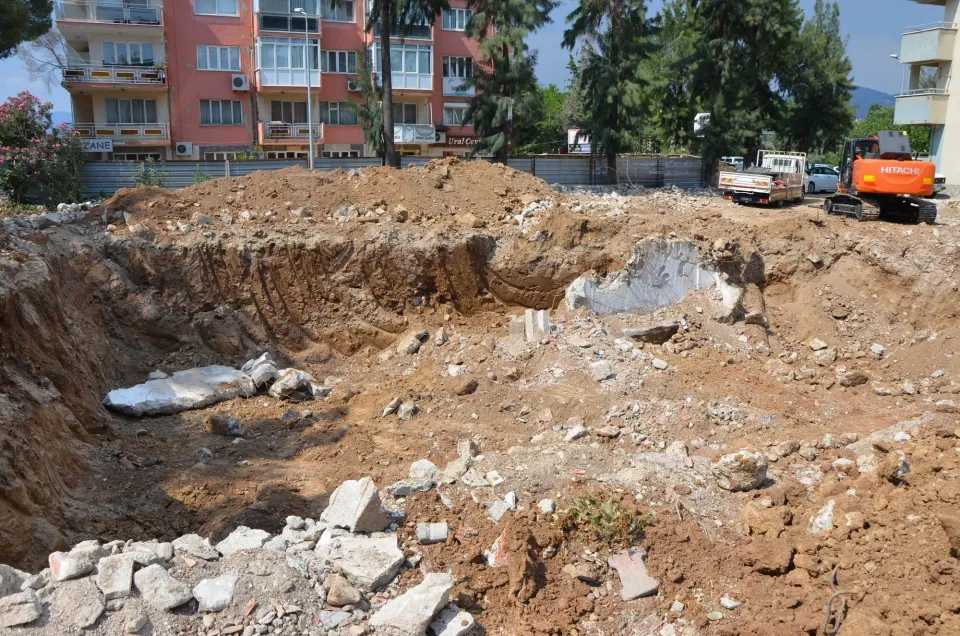 Milas’ta bir inşaat alanında daha temel kazısı sırasında, ilk bulgulara göre tarihi bir mezar ve bir sütun olduğu düşünülen kalıntılar bulundu.
