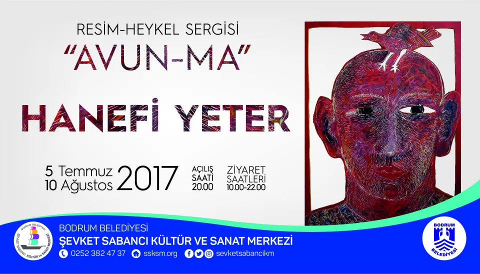 Yurt içi ve yurt dışında bugüne kadar çok sayıda kişisel ve karma sergide eserleri sergilenen sanatçı Hanefi Yeter, “Avun-ma” adlı resim heykel sergisiyle 5 Temmuz – 10 Ağustos 2017 tarihleri arasında Bodrum’da sanatseverlerle buluşacak.